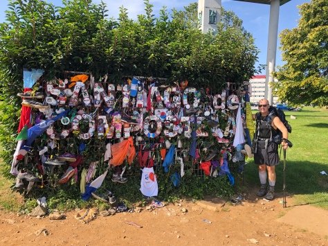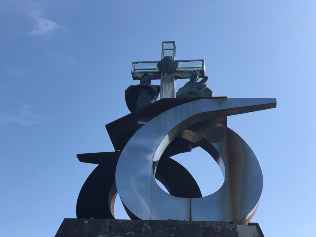 As we continued to get closer and closer to Santiago, we approached Monte do Gozo or the Mount of Joy, where I had my first glance ever of the Santiago Cathedral. Here is the sculpture on the mount…