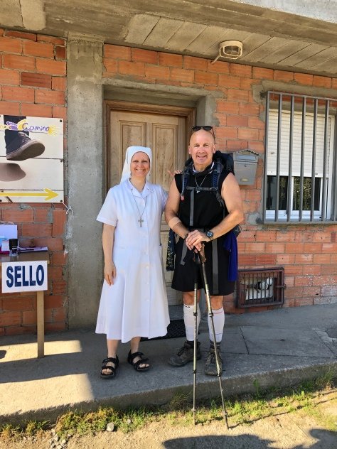 At the end of town, I saw a nun in her habit on the side of the Camino asking for donations for the poor. After giving I asked her if we could have a photo together. She said, “Si, for 50 euros,” and cracked up laughing! Oh man, she was a hoot!
