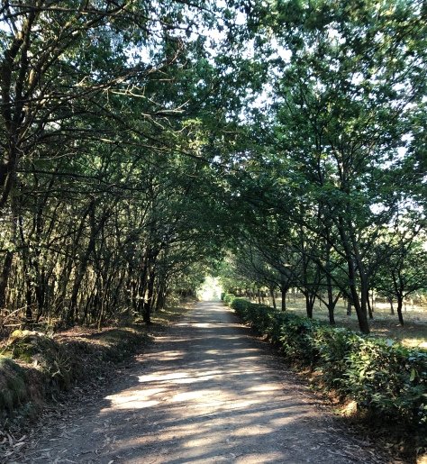After saying goodbye to the sister we left town and up ahead was a tunnel of trees on the Way: